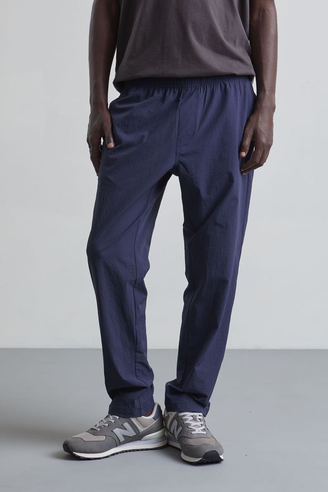 Calça com cós de elástico desenvolvida em tecido tecnológico texturizado com elastano, que garante conforto e mobilidade.