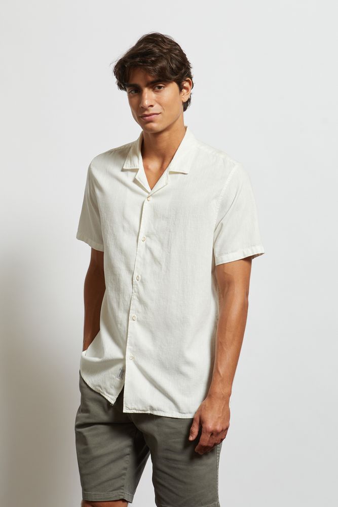 Camisa manga curta desenvolvida em base com a mistura de fibras de viscose e lyocel.
