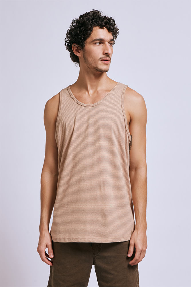 Malha em fio tinto de listras horizontais slim, proporcionam um visual casual e moderno.
